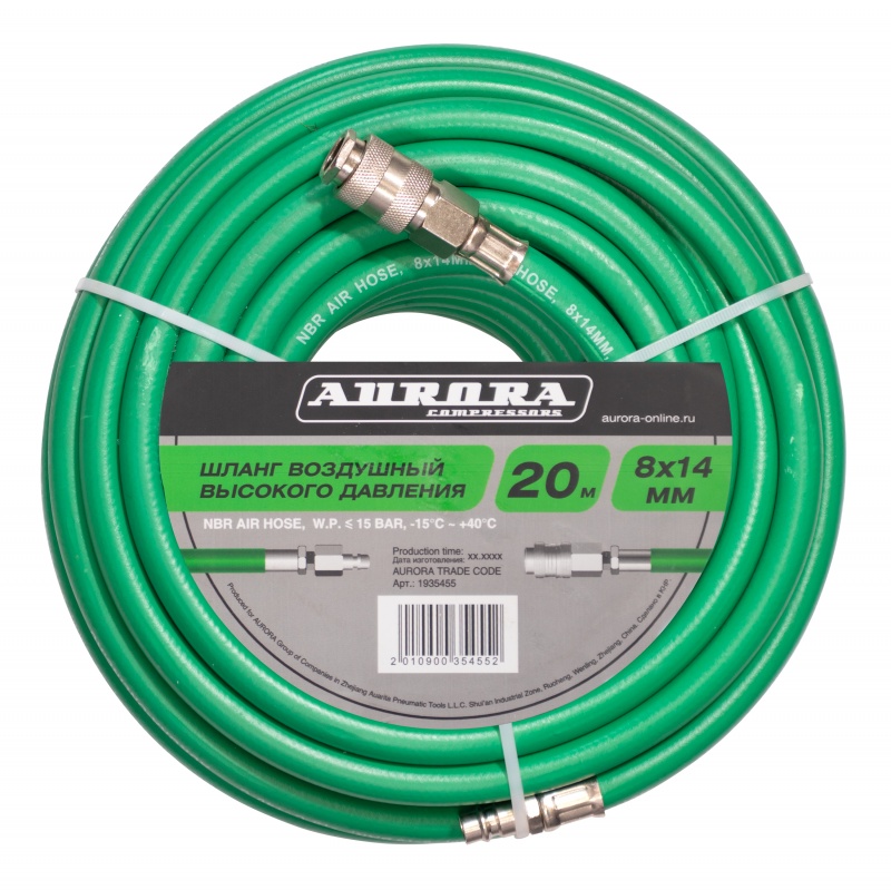 Пневматические шланги AURORA предназначены для подключения разнообразного инструмента к источникам сжатого воздуха: пневмомагистралям, компрессорам и т.д. Широкий выбор диаметров и длин шлангов AURORA позволит подобрать именно тот вариант оснастки, который необходим для каждой конкретной ситуации от подкачки шин до работы гайковёртов, краскопультов, полировальных машин и пр. Рукава изготовлены из синтетического каучука (NBR), армированного капроновой нитью и предназначены для работы со сжатым воздухом с давлением до 15Бар. Температура эксплуатации от -15 до +40С.  Шланги оснащены фитингами рапид.