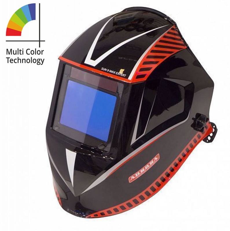 SUN-9 MAX EXPERT – новинка 2017-го модельного года в ассортименте AURORA. Новая концепция блока светофильтра - EXPERT - отличается от предшественников улучшенными характеристиками оптического класса 1/1/1/1 по рассеиванию света, однородности затемнения и угловой зависимости; уникальным диапазоном степени затемнения от 3DIN и новой панелью управления на внутренней стороне щитка. Съёмный элемент питания с продолжительным сроком службы, может быть заменён сварщиком самостоятельно, в случае необходимости. Щиток может быть дооснащён увеличительными стёклами. Маска SUN-9 может использовться вместе с респиратором и установливаться на строительную каску.