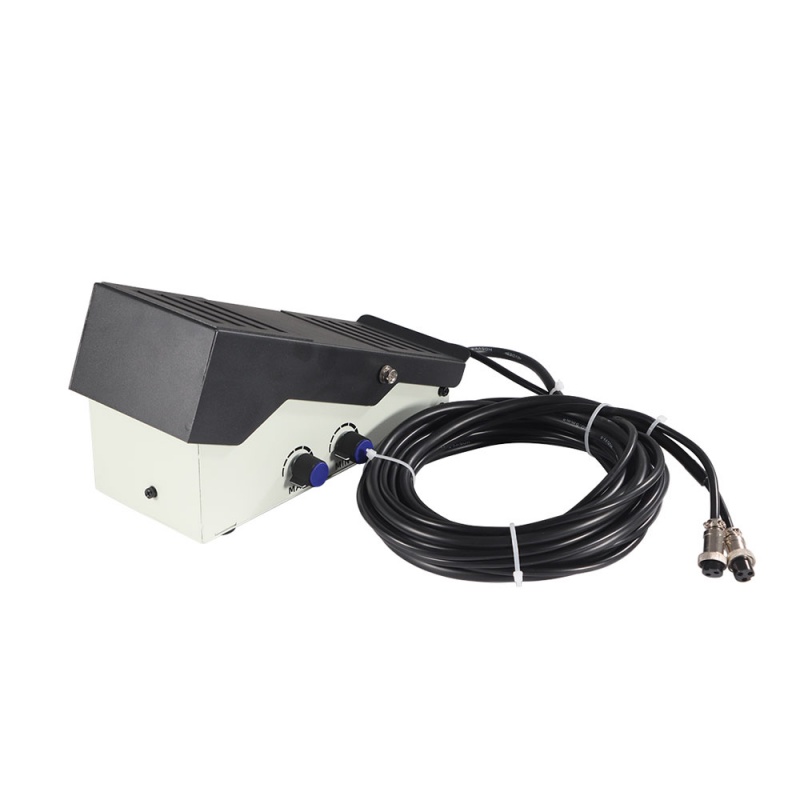 Педаль имеет два потенциометра для установки диапазона регулировки сварочного тока: MIN и MAX. При настройке педали до сварки, дисплей аппарата показывает значение минимального сварочного тока (регулятор MIN). После поджига сварочной дуги, при полностью нажатой педали, дисплей отображает значение настроенного максимального тока (регулятор MAX). В режиме "ПУЛЬС" потенциометры MIN и MAX настраивают значение тока "ПИК". Ток "БАЗА" задаётся на сварочном источнике в процентном отношении от пикового тока пульса.