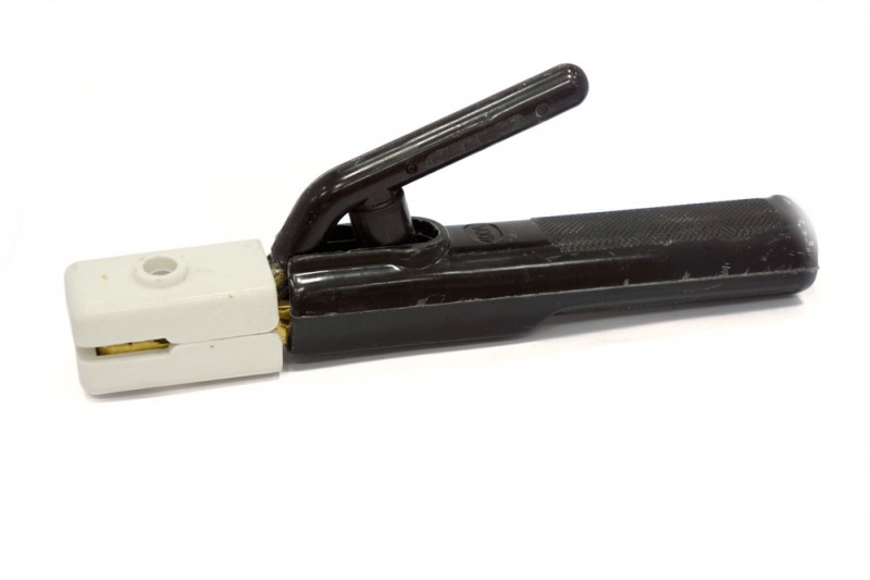 Держатель электрода, предназначен для фиксации сварочного электрода и подачи к нему тока. Держак должен создавать надёжный электро контакт, и обеспечивать возможность крепления электрода под разными углами, для работы в любом пространственном положении.