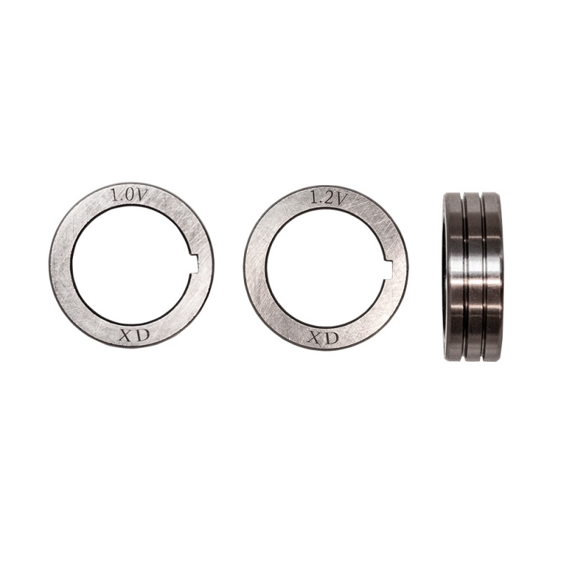 Подающие ролики, обычно, имеют две направляющие канавки сходного размера: 0.6/0.8мм, 0.8/1.0мм, 1.0/1.2мм и т.д. Сварщик при изменении сечения проволоки может перевернуть ролик нужной стороной и использовать его для подачи той проволоки, которая необходима в данный момент.