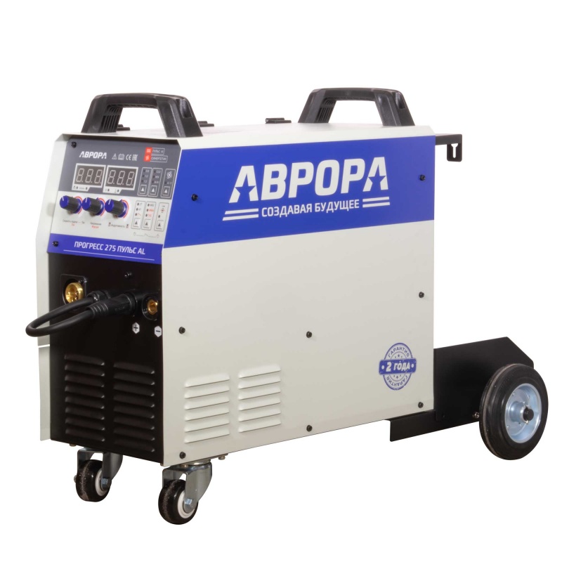 АВРОРА ПРОГРЕСС 275 ПУЛЬС Al – «Умный» инвертор с полностью цифровым управлением на базе ARM платформы 32бит 72МГц, с питанием 400В. Трёхфазый источник сварочного тока предназначен для полуавтоматической MIG-MAG сварки, для ручной дуговой сварки штучным электродом MMA, а также для аргонодуговой сварки в режиме LIFT TIG DC. Аппарат выполнен в едином корпусе со встроенным подающим механизмом, рассчитанным для использования катушек D200 и D300 (5-20кг). Тележка с подставкой под баллон и высокая компоновка аппарата существенно облегчают работу сварщика. Аппарат ориентирован на грузовые и легковые автосервисы, производства и мастерские, которым приходится решать сложные сварочные задачи.