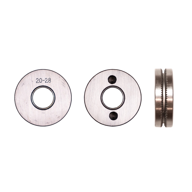 Подающий ролик для работы со сварочными тракторами. Ролики подачи подбираются в соответствии с типом сварочной проволоки и её диаметром. Ролик изготовлен из легированной стали с последующей термообработкой.